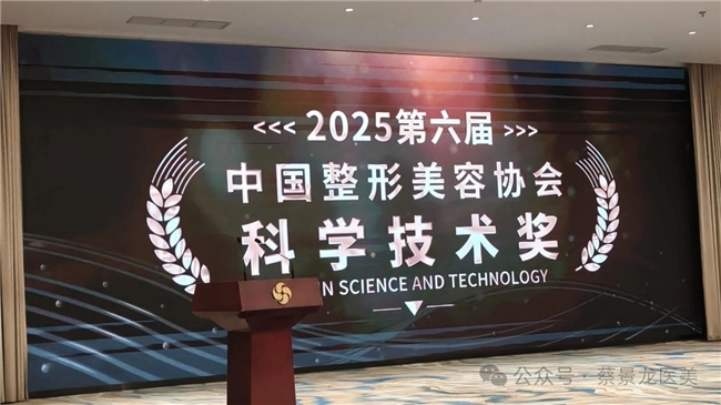 (2025第六届中国整形美容协会科学技术奖颁奖现场) 中国整形美容协会科学技术奖是经国家科学技术奖励工作办公室备案的国家级行业权威科技奖项,被誉为整形美容领域 “科技发展风向标”。本届奖项历经多轮严格评审,获奖项目代表国内整形美容学科最高临床与科研水准。蔡景龙教授团队成果成功获奖,充分彰显其研究的创新性、实用性与行业引领价值。