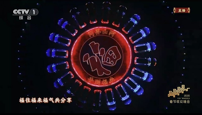 节目以“转福纳吉”为核心立意,凭借极具互动性的“转福”手势引爆全民参与。随着旋律流淌,问界M9应和着“转福”手势,以变幻的科技光影车阵勾勒出团圆轮廓,“问界山河”与“福”字点亮夜空。这场突破边界的演绎,正是问界“智慧重塑豪华”理念的生动实践。