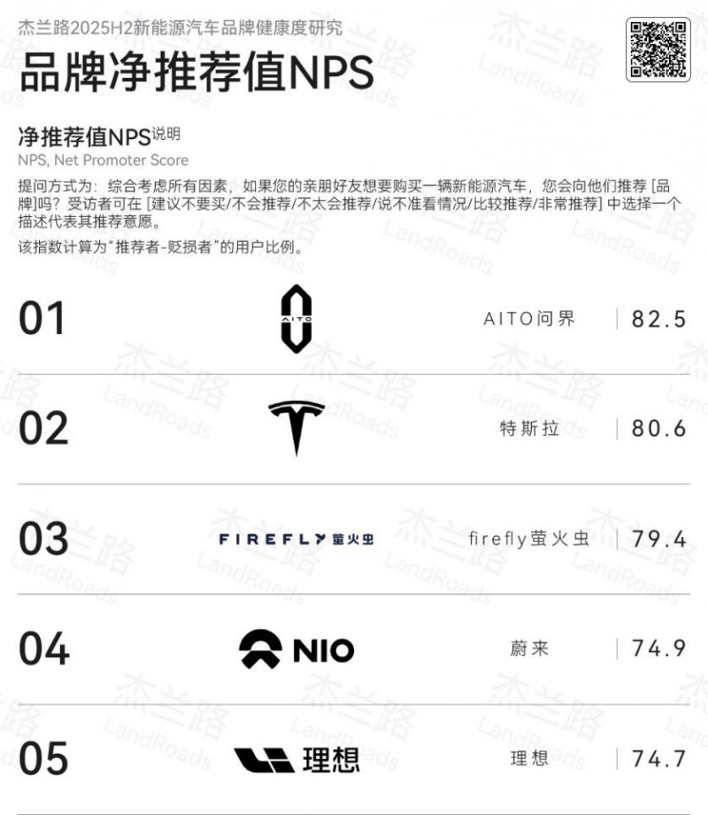 硬核的市场表现,是品牌底气的直接印证。自2021年底品牌发布以来,问界仅用46个月便达成100万辆交付成就,刷新了中国新能源汽车市场的交付速度纪录。其中,旗舰车型问界M9表现尤为亮眼,累计交付突破27万辆,累计21个月稳居50万元级车型销量冠军,成为高端市场的绝对风向标。与此同时,在2025年度下半年新能源汽车品牌健康度研究中,问界荣获品牌净推荐值(NPS)第一,问界M9、问界M8双旗舰王牌包揽车型总榜净推荐值第一和第二,真正实现销量与口碑双丰收,用实打实的数据筑牢品牌硬实力。